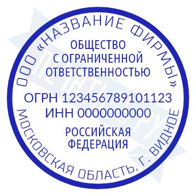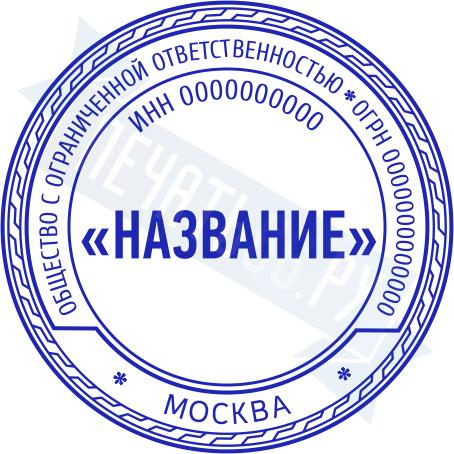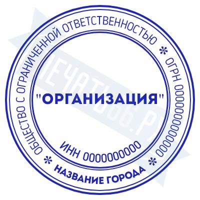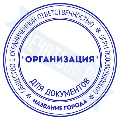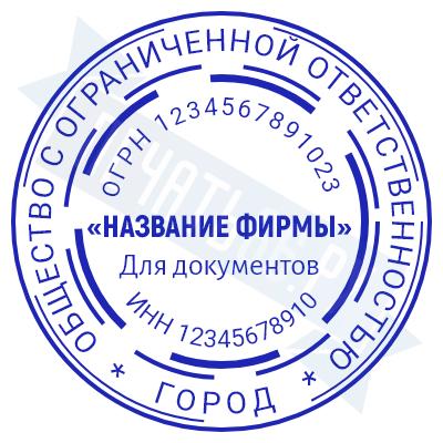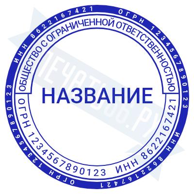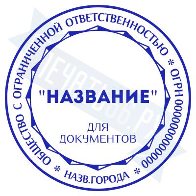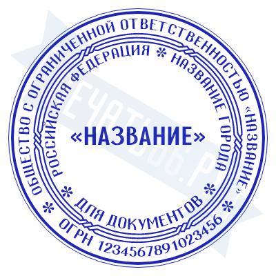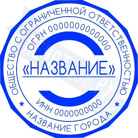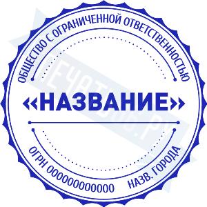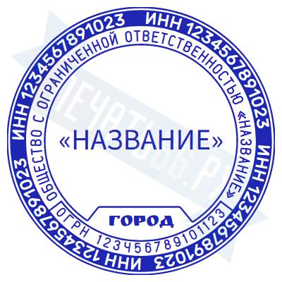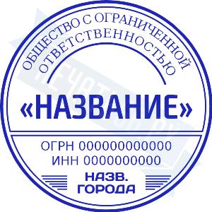- Печать ООО стандартная на металлической оснастке Сабина диаметром 42 мм со встроенной подушкой по цене 3148 рублей и еще 69 видов стандартных печатей
